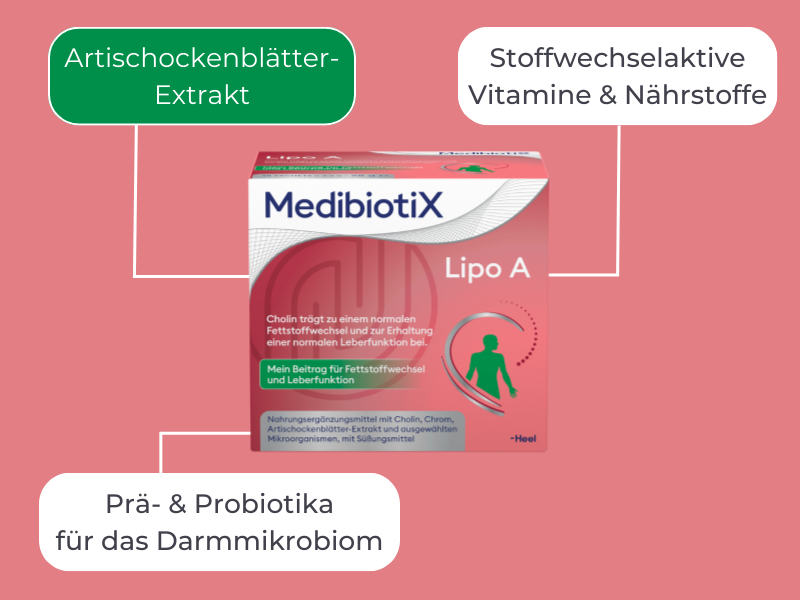 Darmgesundheit – Eine Rundum-Pflege für dein Mikrobiom: Ein gesunder Darm ist die Grundlage für ein starkes Immunsystem, einen funktionierenden Stoffwechsel und eine gute Verdauung. Die Kombination von insgesamt 6 Mrd. Bifidobakterien und Laktobazillen sowie präbiotischen Ballaststoffen in MedibiotiX Lipo A und MedibiotiX Fit sorgt dafür, dass dein Darmmikrobiom im Gleichgewicht bleibt. Das in Lipo A enthaltene Artischockenblätter-Extrakt unterstützt zusätzlich die Fettverdauung, indem es die Bildung von Verdauungssäften anregt, ein wichtiger Faktor für einen reibungslosen Ablauf im Magen-Darm-Trakt.