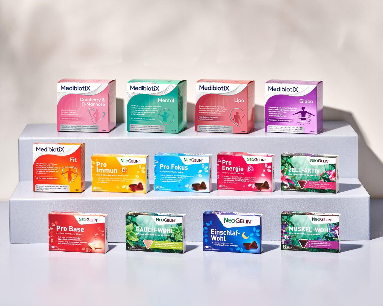 Die NeoMarken bestehen aus hochwertigen Nahrungsergänzungsmitteln der NeoGelin und MedibiotiX Produktreihe.